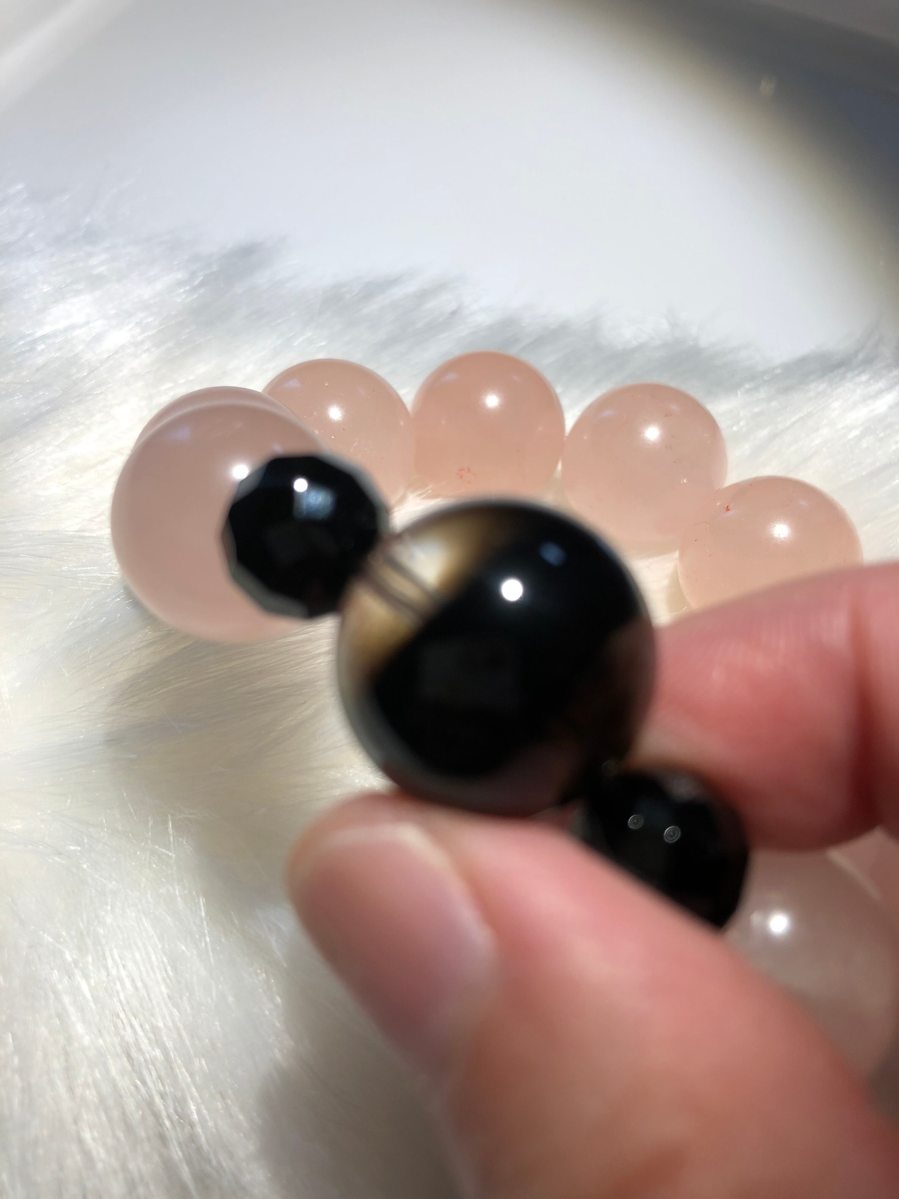 AAAスモーキーファントムクォーツ・オニキス・ローズクォーツ(最初は何もありませんでしたが、エネルギーを入れて行くうちに所々に虹が入りました)