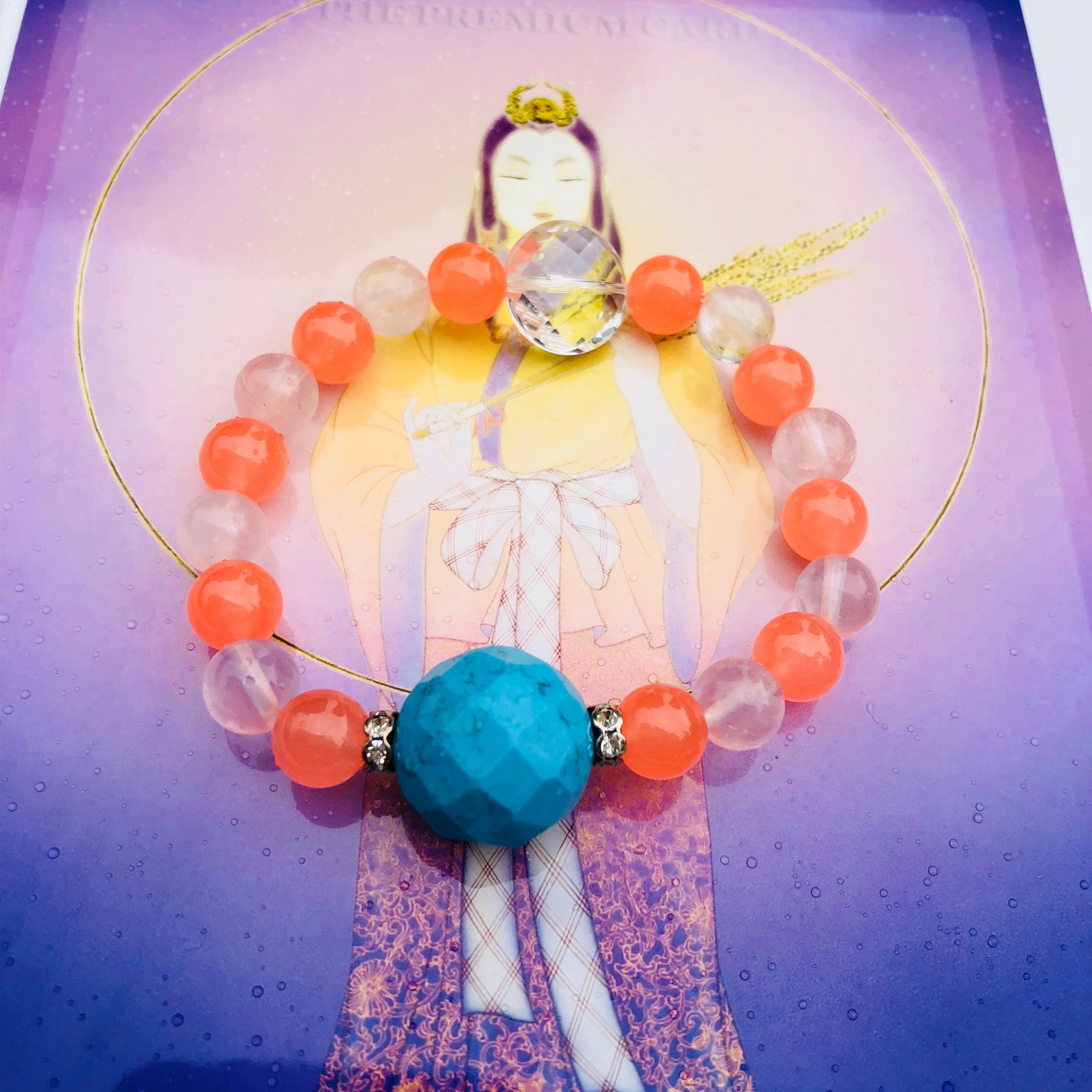 大ぶりターゴイズ+カルセドニー+ローズクォーツ+最高級宝石質水晶