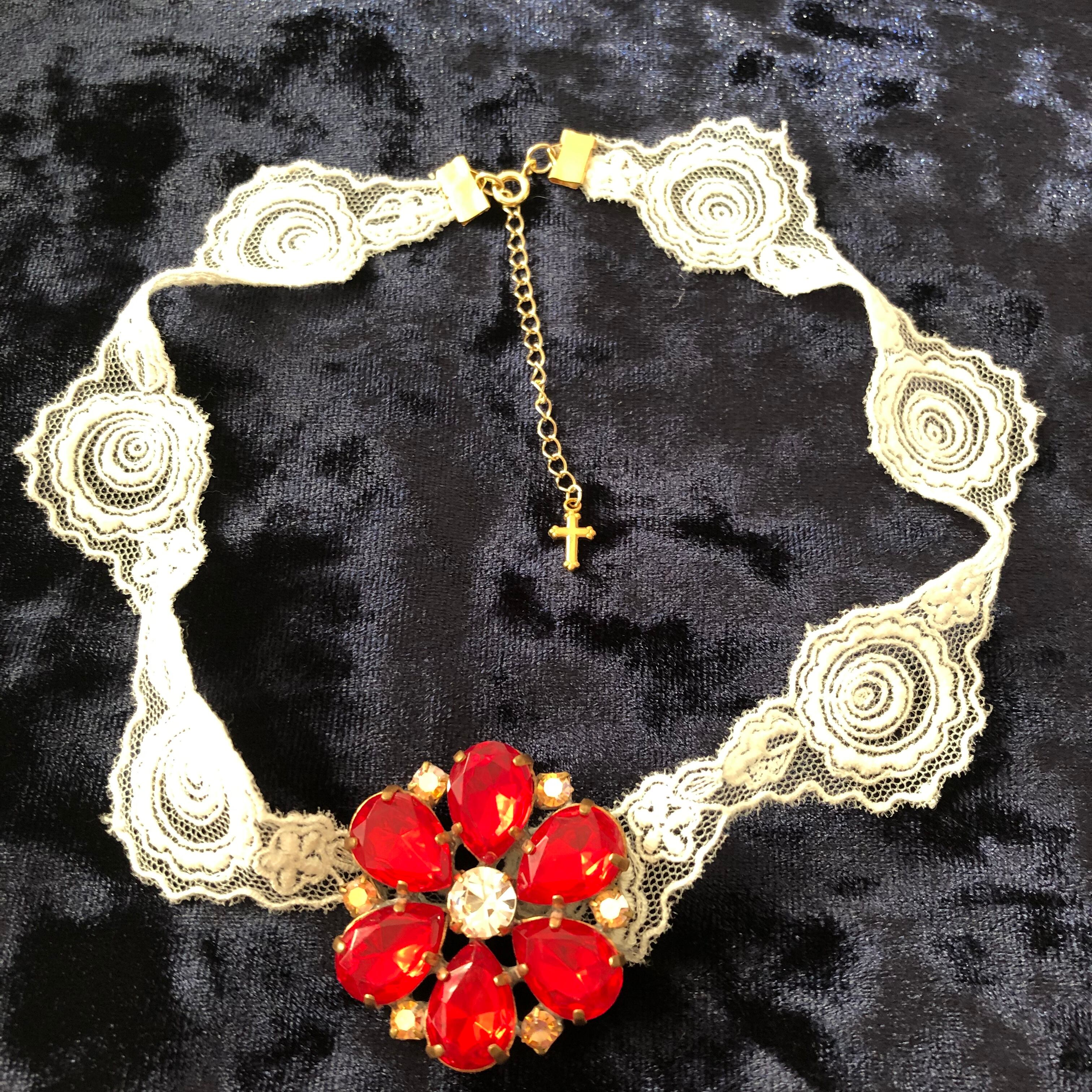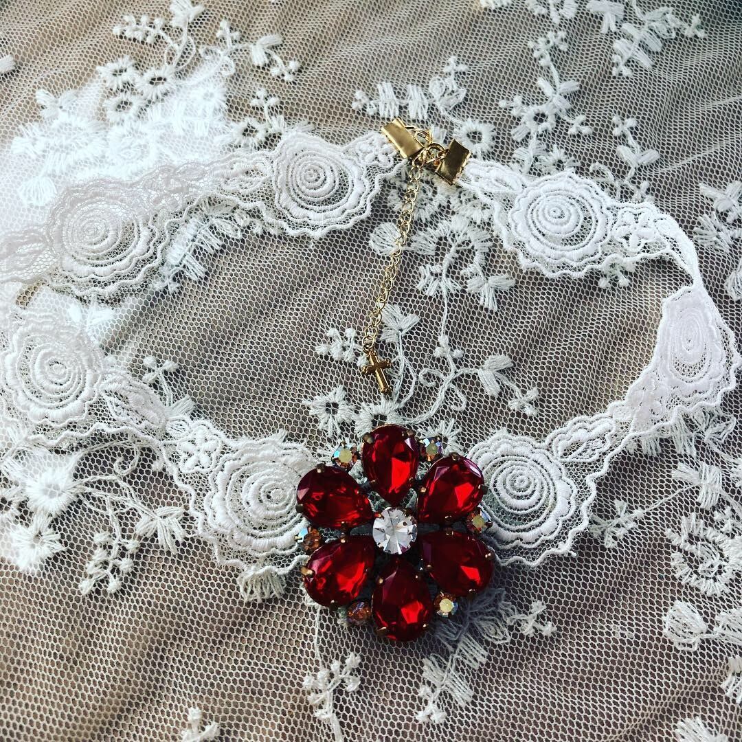 ヴィンテージフラワーボタンのチョーカーネックレス