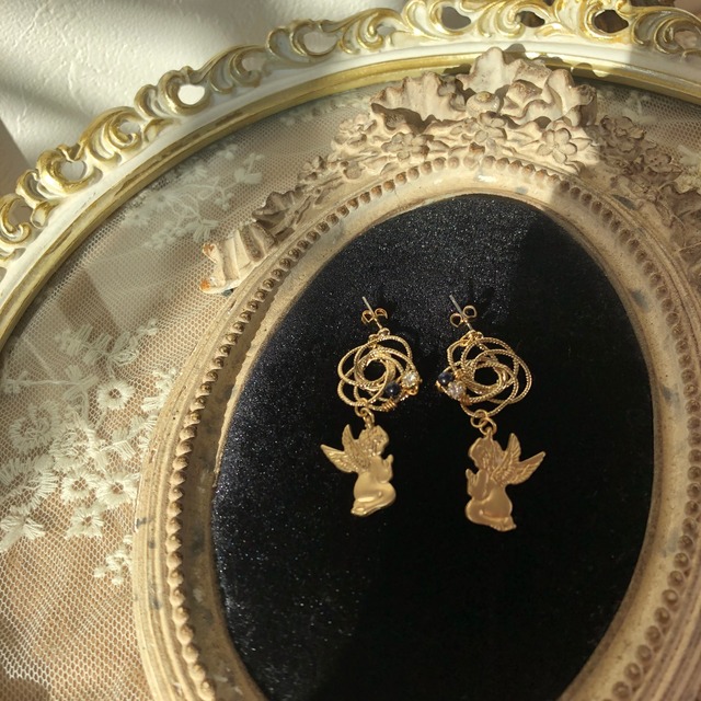 祈りのエンジェル&メタルフラワーのピアス