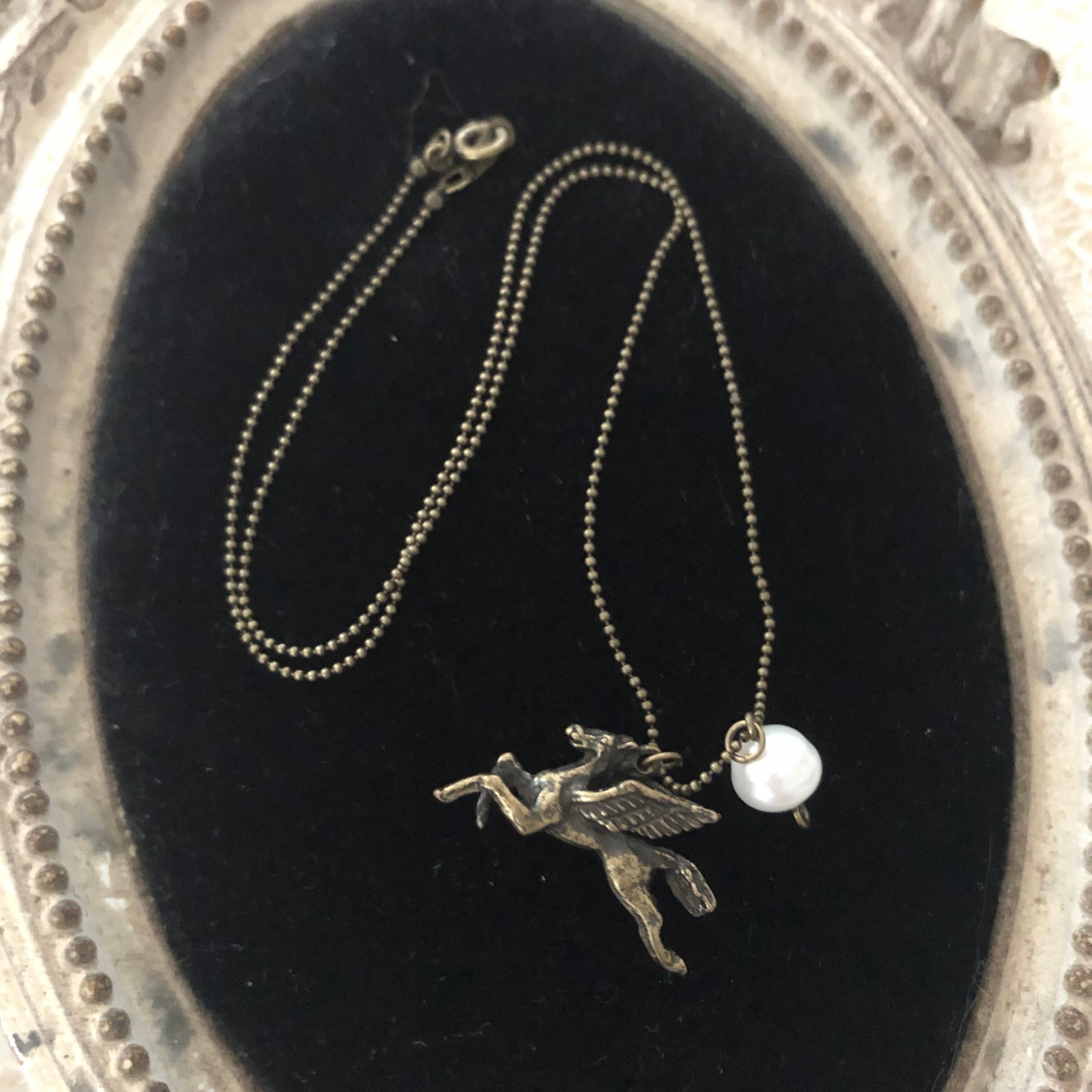 ペガサスと天然淡水パールのネックレス