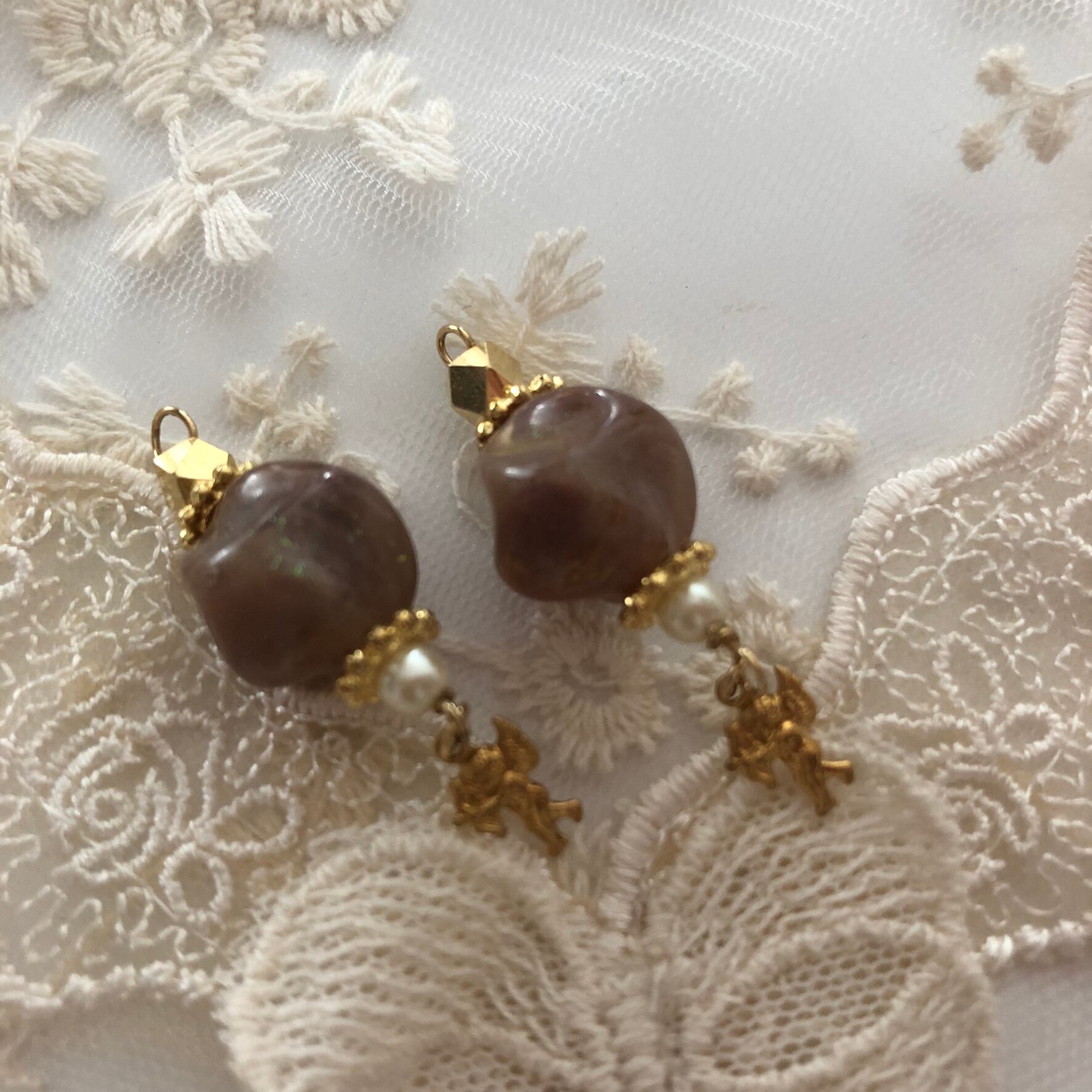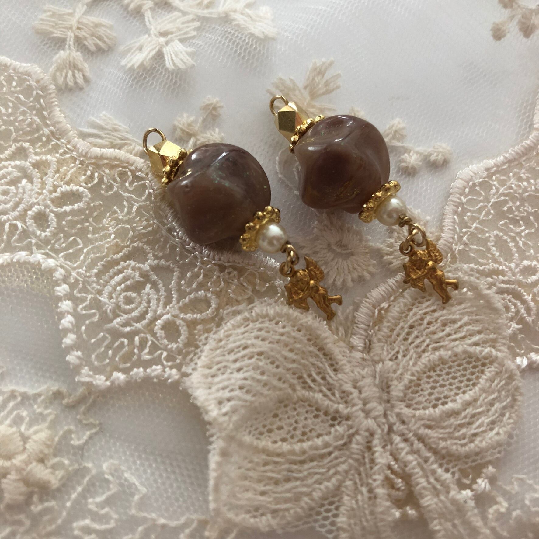 クラシカルなカラーのヴィンテージビーズを使用しブラス製エンジェルと合わせました。