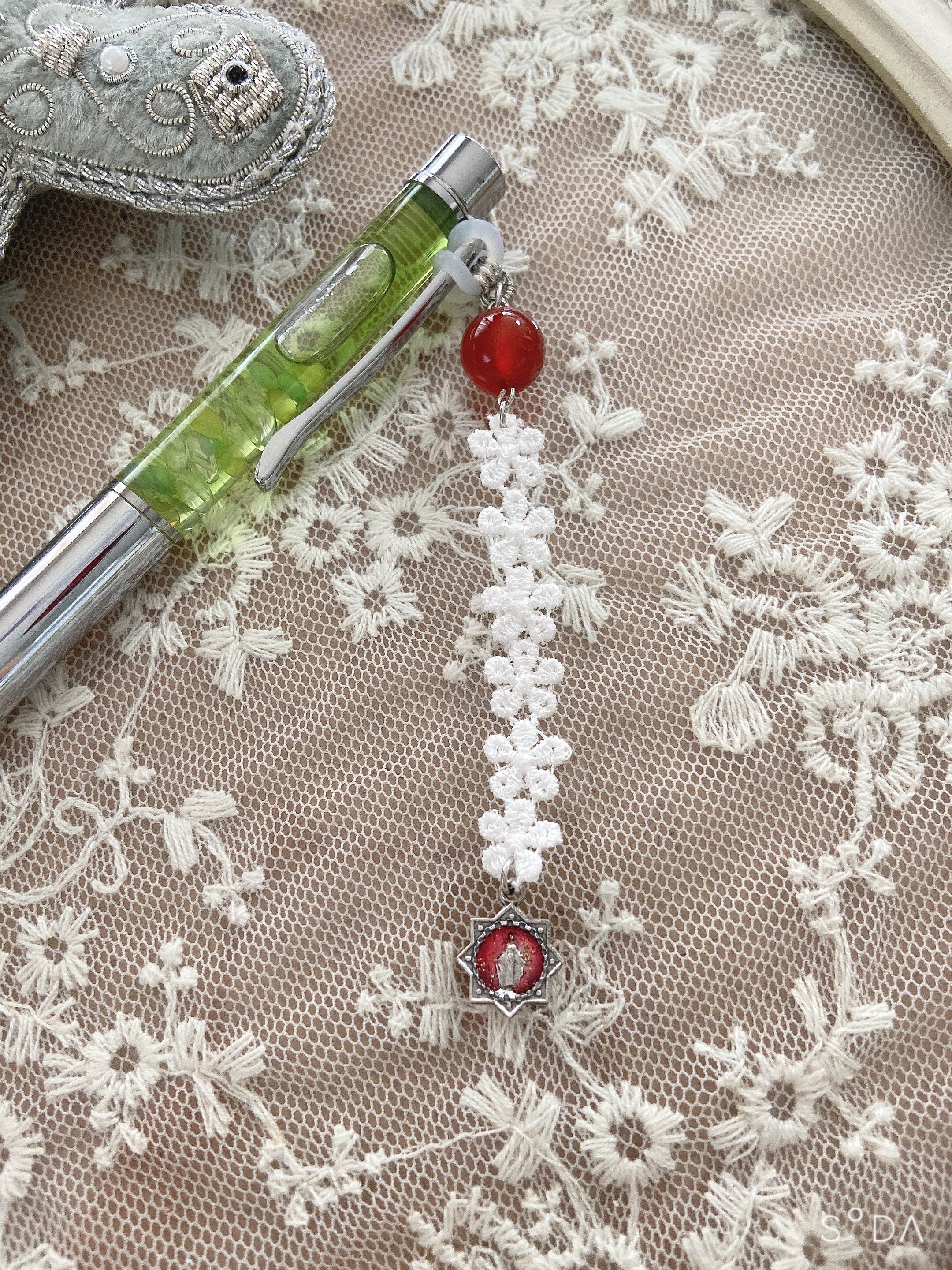 願望実現をサポートするレッドアゲートとレースとメダイでラブリーです。